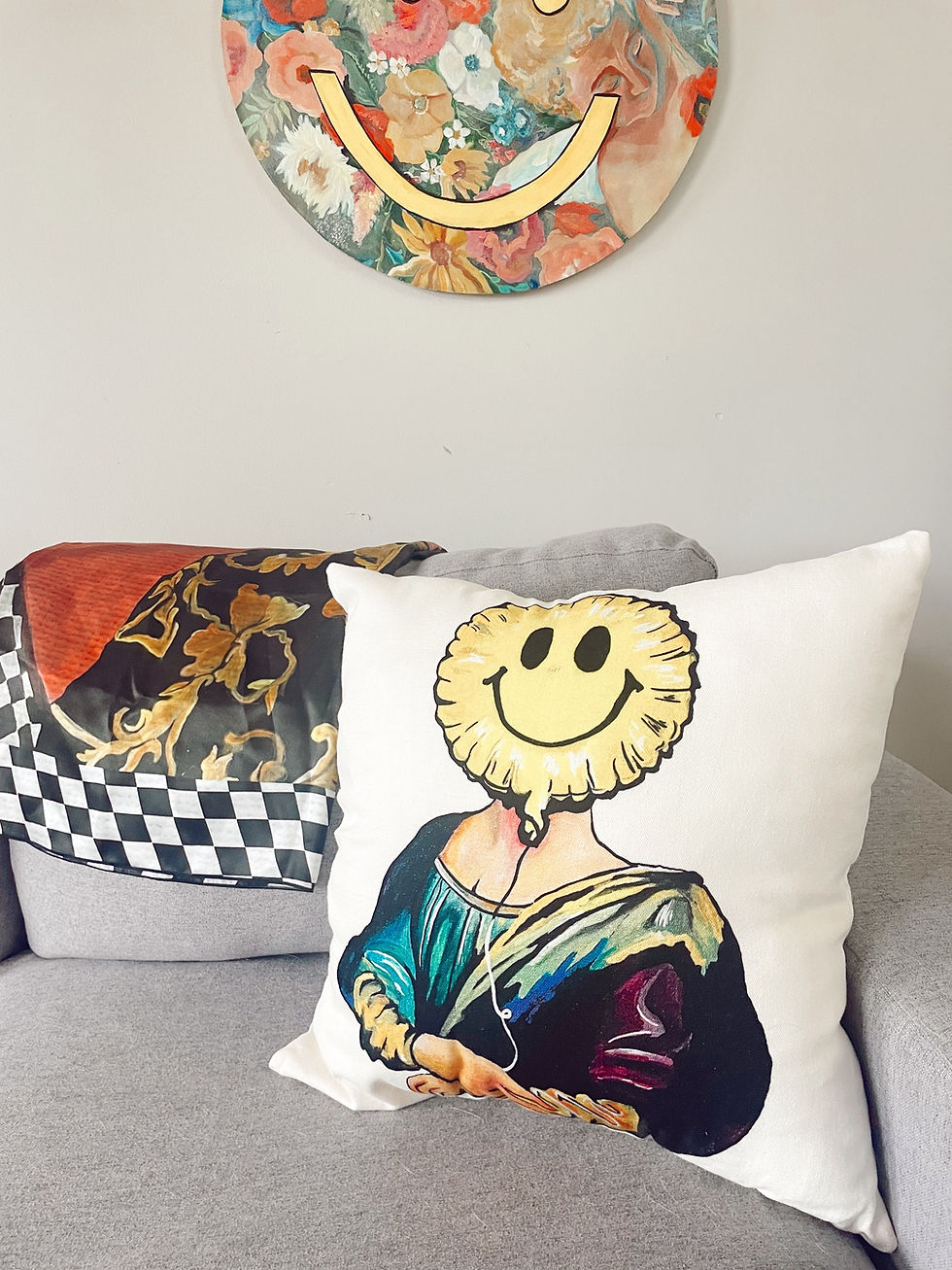 Mona Lisa Smiley Pillow